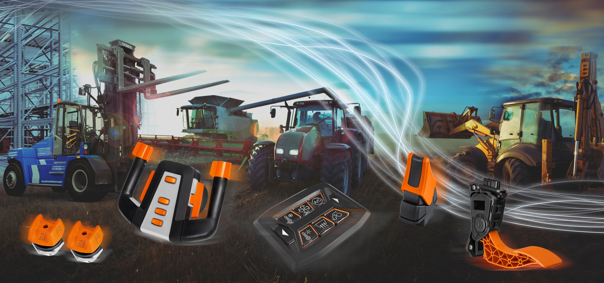 Numerous high-profile customers, including world market leaders in the fields of industrial trucks, cleaning and construction machines and vehicle manufacturing rely on our control elements. Their quality, robustness and long service life are just as convincing as their ergonomic design. Control elements built by Frei are guaranteed to operate reliably in even the harshest conditions and individually tailored to the required functionality.