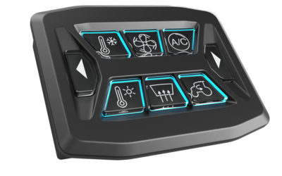 We have revolutionised this field with our innovative Dynamic Keypad solution. Safety is paramount in an off-road vehicle, and the Dynamic Keypad has been designed to meet these high standards, offering a unique selling point. With a customisable display pad, the Dynamic Keypad combines effective simplicity with a wide range of options. Instead of multiple rows of keys, which aren’t always required, our technology allows you to configure the keypad to suit your needs, with just a few, clearly arranged operating elements. The function menus can be changed via configurable arrow keys or directly via software signals. With intuitive dynamic symbols and colours, functions are clearly allocated to the respective buttons. While we’re all very familiar with touchscreens, blind operation is often advantageous for complex operating procedures. This is a factor that we have also taken into account with tactile, transparent buttons that are pressed on the display.